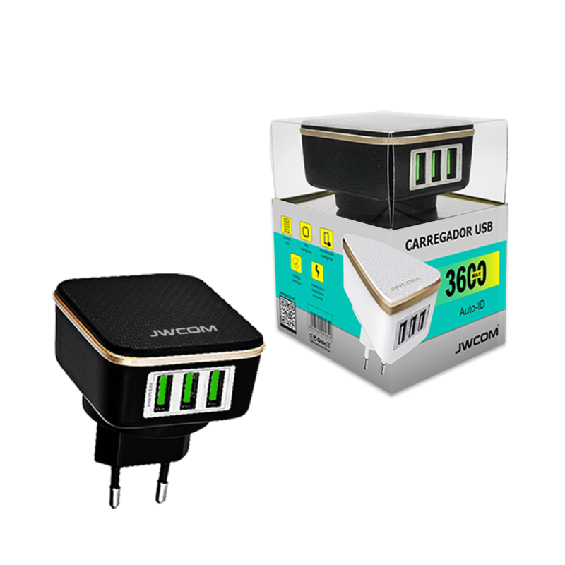 Carregador Portátil Tomada 3 Portas USB Universal Turbo JWCOM CRT-G26